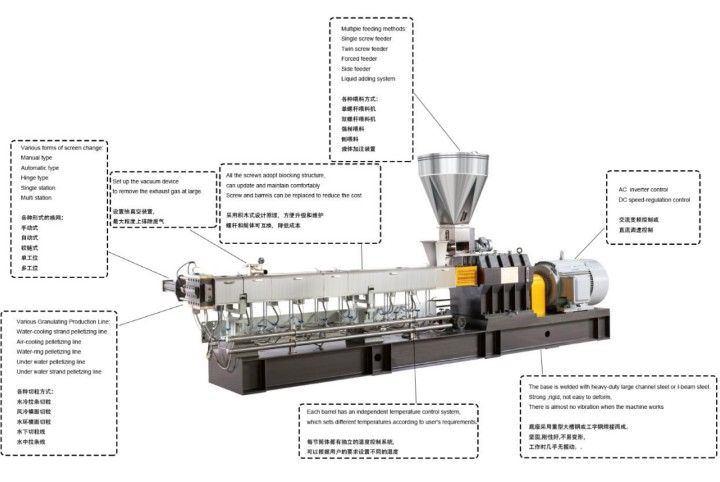 | Unique planetary screw design | Make the material more fully mixed and plasticized during the processing, improve processing efficiency and product quality. |